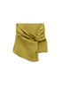 Gonna mini in asimmetrica realizzata in tessuto satinato. Nodo asimetrico in dettaglio.
